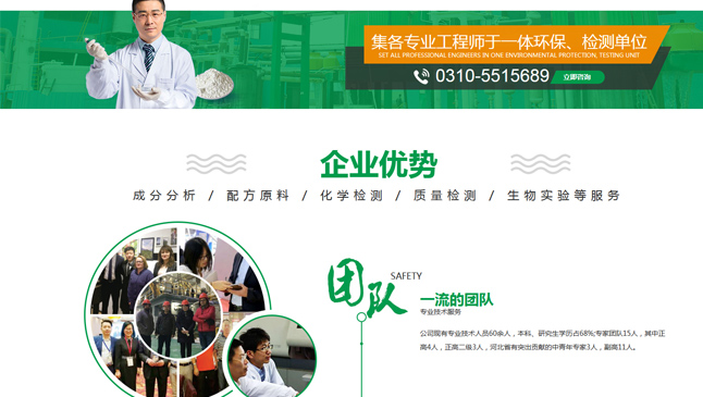 河北融洋安全檢測有限公司成立于2009年,注冊資金800萬(wàn)元。業(yè)務(wù)范圍包含食品檢測、環(huán)境檢測、公共場(chǎng)所檢測、職業(yè)病危害因素檢測、評價(jià)及相關(guān)技術(shù)服務(wù)等。公司現有專(zhuān)業(yè)技術(shù)人員60余人,本科、研究生學(xué)歷占68%;專(zhuān)家團隊15人,其中正高4人,正高二級3人,河北省有突出貢獻的中青年專(zhuān)家3人,副高11人。