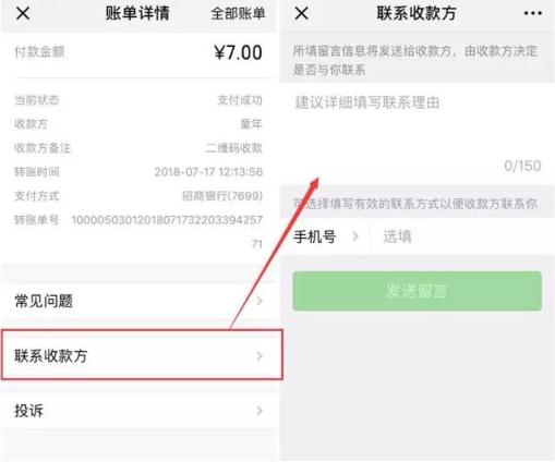 這時(shí)候,只要你選擇的支付方式是「微信支付」(邯鄲微信開(kāi)發(fā)),就可以通過(guò)這個(gè)支付記錄里的「聯(lián)系收款方」給司機留言。