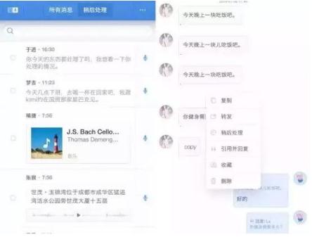 在繁忙的工作中,我們經(jīng)常會(huì )收到許多消息,也會(huì )碰到消息已讀后無(wú)法及時(shí)回復,然后忘記處理的情況。這個(gè)問(wèn)題在子彈短信中可以被「稍后處理」解決。當你閱讀完信息后,無(wú)法及時(shí)回復,可以將它列入稍后處理的榜單中,之后便可逐一回復。