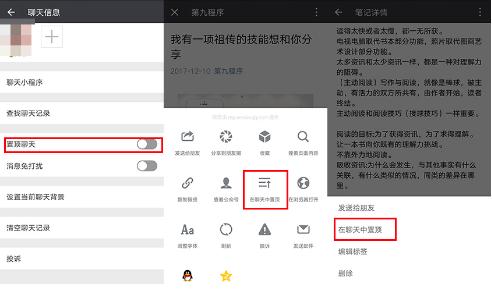 當你正在閱讀一篇文章的時(shí)候,突然有信息要回復的話(huà),可以先將文章置頂,等其他事情都處理之后,在聊天頁(yè)面直接打開(kāi)重新閱讀就可以了,節省了再去找這篇文章的時(shí)間。