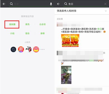 不管是群還是個(gè)人聯(lián)系人,你都可以點(diǎn)擊右上角,然后選擇【查找聊天內容】,根據記憶搜索相關(guān)內容,無(wú)需盲目查找;同樣的,在微信頂部的搜索框中,也能根據需要,按照分類(lèi),搜索查找相關(guān)內容,比如搜索朋友圈中包含“生日”的信息;搜索包含“小程序”的文章等等;另外,在一篇已經(jīng)打開(kāi)的微信文中,點(diǎn)擊右上角的三個(gè)點(diǎn),再點(diǎn)擊底部的【搜索頁(yè)面內容】,從而找到包含相關(guān)關(guān)鍵詞的內容。