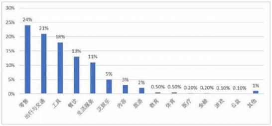微信小程序行業(yè)分布數據顯示,在訪(fǎng)問(wèn)分布維度上,小程序位居前五的分別為零售占24%,出行占21%,工具占18%,餐飲占13%,生活服務(wù)站11%;根據2018年1月1日小程序日排行,游戲類(lèi)小程序有明顯的后來(lái)居上之勢,前十席中游戲占據3席。
