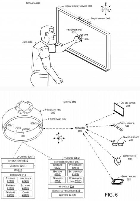 2016 年,微軟一項正在研發(fā)的智能指環(huán)專(zhuān)利被公開(kāi)了,當時(shí)的專(zhuān)利描述顯示智能指環(huán)內置曲面的傳感器, 可識別手指指關(guān)節擺動(dòng)?,F在一項申請于 2018 年 6 月 11 日的智能指環(huán)型可穿戴設備觸控檢測專(zhuān)利再度于近日被美國專(zhuān)利局公開(kāi),該專(zhuān)利顯示了一個(gè)能夠與大屏幕顯示屏等多種設備互動(dòng)的智能指環(huán),其可以通過(guò)多重傳感器來(lái)識別用戶(hù)的之間運動(dòng)手勢和壓力。