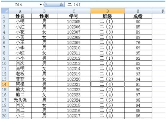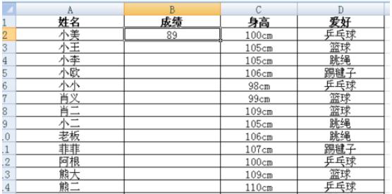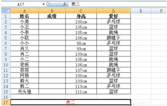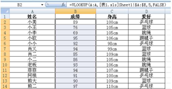 完成上述步驟后,我們點(diǎn)擊“enter”鍵,表二第一個(gè)單元格就會(huì )出現小美的成績(jì)。然后我們把將鼠標放在小美成績(jì)單元格右下角,當光標變成“十”字的時(shí)候,按左鍵不放,往下拉到最后一個(gè)單元格,我們就可以表二所有成績(jì)都引用填充好。