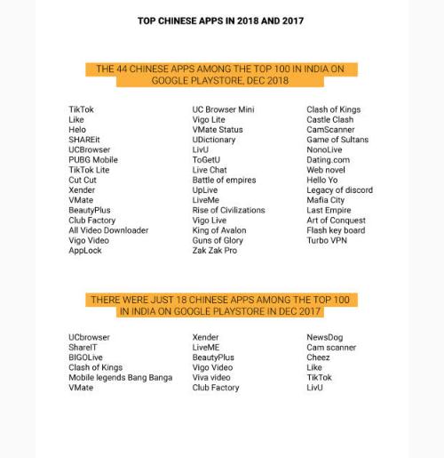 2017 年和 2018 年的印度頂級中國應用程序
