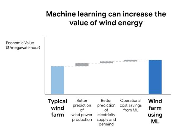 谷歌表示,與沒(méi)有部署 AI 預測的情況相比,新方案可將風(fēng)能的價(jià)值提升 20% 。