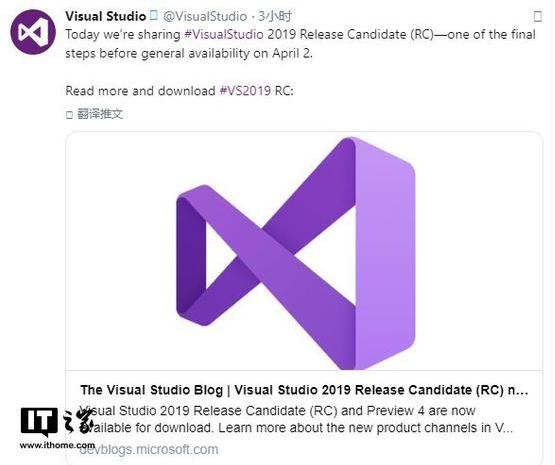 今天,微軟正式公布了 Visual Studio 2019 首個(gè)候選發(fā)布版(Visual Studio 2019 RC 版),這一版本標志著(zhù) Visual Studio 2019 開(kāi)發(fā)基本接近尾聲,正式版本將在今年 4 月 2 日的微軟 Visual Studio 線(xiàn)上發(fā)布活動(dòng)上公布。
