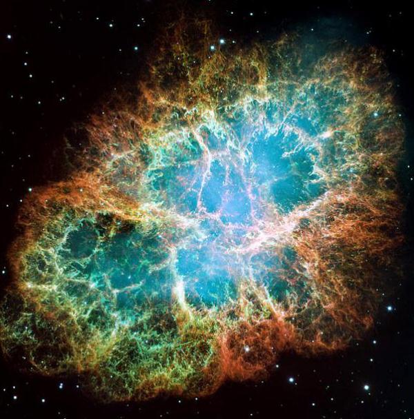 蟹狀星云距離地球大約 6500 光年,根據中國古代天文學(xué)家們的記載,這是一起發(fā)生在公元 1054 年的超新星爆發(fā)事件遺留下的遺跡。此次爆發(fā)事件為粒子加速成為極端高能粒子提供了適宜的環(huán)境條件。