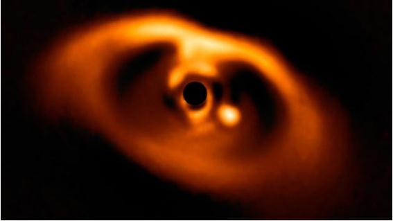 最初的發(fā)現是在 2018 年 6 月,當時(shí)有天文學(xué)家發(fā)布了一張圖片,一顆行星在 PDS 70 恒星周?chē)脑行潜P(pán)內繞軌道運行,PDS 70 是一顆大約有 500 萬(wàn)年歷史的年輕恒星(太陽(yáng)的年齡大約是它的 1000 倍),一個(gè)月后,另一項研究表明,當熾熱的氫原子落在這顆行星上時(shí),它發(fā)出了一束深紅色的光,表明該行星仍在不斷膨脹。