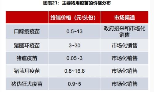 目前市場(chǎng)上主要的豬用疫苗包括:口蹄疫疫苗、豬藍耳疫苗、偽狂犬疫苗、豬瘟疫苗、豬圓環(huán)疫苗等。 從研發(fā)、生產(chǎn)工藝等角度分析,非洲豬瘟疫苗成本均高于其他豬用疫苗。