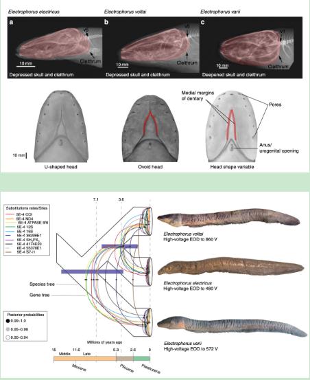 在《自然通訊》發(fā)表的研究中,美國華盛頓哥倫比亞特區史密森尼博物館的研究人員檢查了來(lái)自亞馬遜地區的107個(gè)電鰻樣本,根據基因、形態(tài)、地理分布等要素得出結論:亞馬遜盆地的電鰻屬于三種不同的物種,在數百萬(wàn)年前從一個(gè)共同祖先進(jìn)化而來(lái)。