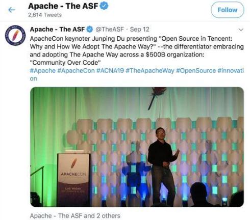 近日,一年一度的國際開(kāi)源頂會(huì ) ApacheCon 2019 在美國舉辦,正值 Apache 軟件基金會(huì )(Apache Software Foundation,ASF)成立 20 周年之際,騰訊作為本次大會(huì )主會(huì )受邀的唯一中國企業(yè),發(fā)表 ApacheCon 的 keynotes 演講。