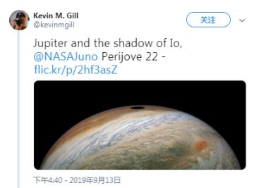 公民科學(xué)家和美國宇航局軟件工程師 Kevin Gill 分享了他的圖像版本,除了木衛一的陰影,他還突出了木星大氣層壯美圖案。