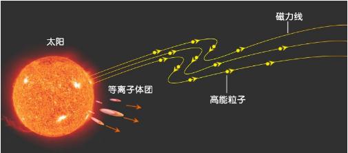 成像儀器還看到太陽(yáng)附近日冕物質(zhì)拋射的特征。這些是來(lái)自日冕的物質(zhì)大爆發(fā)。研究這些爆發(fā)對我們的社會(huì )非常重要。如果大型日冕物質(zhì)拋射撞擊地球,會(huì )造成很多干擾,例如斷電、GPS 信號丟失、無(wú)線(xiàn)電通信中斷以及對航空旅行者和宇航員的傷害。