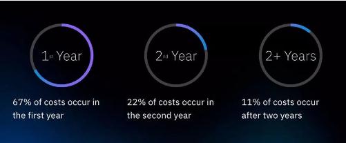報告還表明,數據泄露造成的損失具有長(cháng)尾效應,其影響持續數年。數據泄露成本有 67% 出現在泄露發(fā)生后的第一年,有 22% 出現在第二年,另有 11% 在兩年后才顯現。對醫療保健、金融服務(wù)、能源和醫藥等受到嚴格監管的企業(yè)而言,第二年和第三年的長(cháng)尾成本損失會(huì )更高。