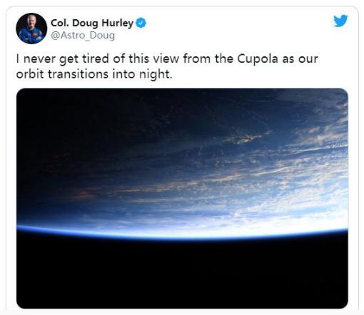 赫爾利的妻子凱倫·尼伯格(Karen Nyberg)也是 NASA 的一名退休宇航員,她在推特上寫(xiě)道:“看看這里的氣氛!它是如此艷麗的藍色,黑暗與光明只一線(xiàn)之隔。赫爾利從國際空間站拍攝了許多非常美麗的地球照片,它們提醒我,這個(gè)令人驚嘆的家園屬于我們所有人!”赫爾利也稱(chēng):“當我們在軌道上從白天過(guò)渡到夜晚時(shí),我永遠不會(huì )厭倦從穹頂艙看到的這幅景色。”