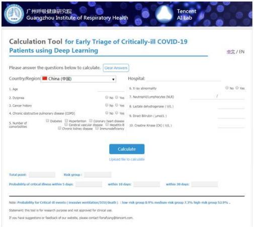 此項研究基于人工智能深度學(xué)習所建立的生存模型,對 COVID-19 患者入院時(shí)的 10 項臨床特征進(jìn)行分析,可以幫助預測患者發(fā)展至危重病情的風(fēng)險,如在患者住院期間持續采用此模型進(jìn)行分析,預測結果會(huì )更加準確,有助于監測患者住院期間的風(fēng)險趨勢。依據此模型開(kāi)發(fā)出的預測工具“COVID-19 患者重癥早期分診系統”已經(jīng)在線(xiàn)公開(kāi)于 https://aihealthcare.tencent.com/COVID19-Triage_en.html,臨床醫護工作人員也可以訪(fǎng)問(wèn)微信小程序獲得這一工具。