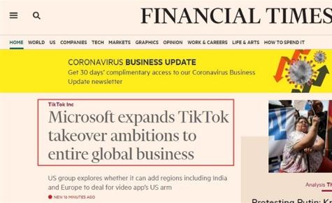 微軟對于 TikTok 的收購意向此前僅限美國市場(chǎng),而現在微軟正尋求買(mǎi)下 TikTok 全球業(yè)務(wù)的可能,包括在印度和歐洲的部分。