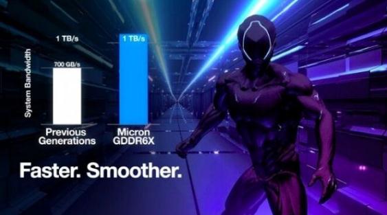 據悉,美光 GDDR6X 已經(jīng)與英偉達合作,在全新的英偉達 GeForce RTX 3090 和 GeForce RTX 3080 GPU 中搭載 GDDR6X。