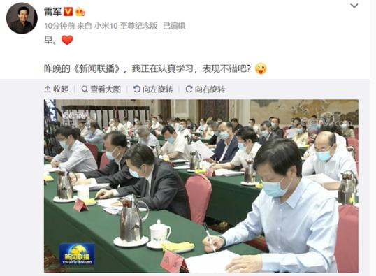 雷軍表示,昨晚的《新聞聯(lián)播》我正在認真學(xué)習,表現不錯吧?