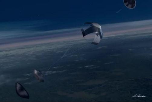 圖1:日本小行星取樣任務(wù)探測器 Hayabusa2 太空艙降落在地球上的藝術(shù)渲染圖