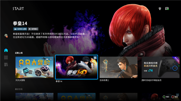 現在,云游戲平臺上線(xiàn)了 14 款游戲。(首批上線(xiàn)的游戲有《古劍奇譚三》、《拳皇 14》、《侍魂曉》、《波西亞時(shí)光》、《只只大冒險》、《不思議的皇冠》、《彩虹墜入》、《軒轅劍外傳:穹之扉》、《NBA2K ONLINE 2》等)