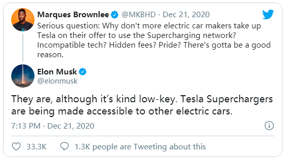 昨日,馬斯克再次證實(shí),其他品牌的電動(dòng)汽車(chē)可以使用特斯拉超級充電樁,但他沒(méi)有透露哪家公司正在研發(fā)與特斯拉充電樁的兼容性。