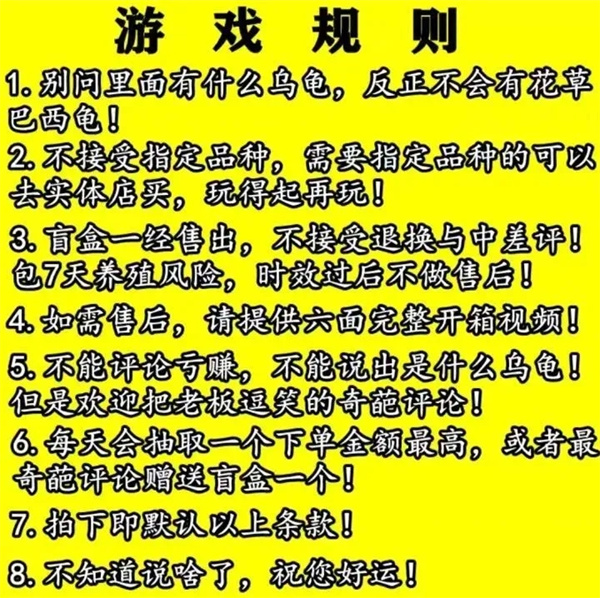 一位商家告訴記者,盲盒一經(jīng)出售不退不換,不得評論曬圖是什么品種,玩的就是心跳和刺激,品種隨機發(fā),運氣由自己。大小未知數量不明,是否全品全憑運氣,心態(tài)不好不建議拍。“別問(wèn)我是啥,我也不知道,一切天注定。”