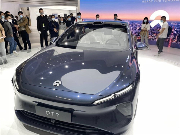 拍于2021上海車(chē)展,蔚來(lái)的ET7也在頂部嵌有激光雷達