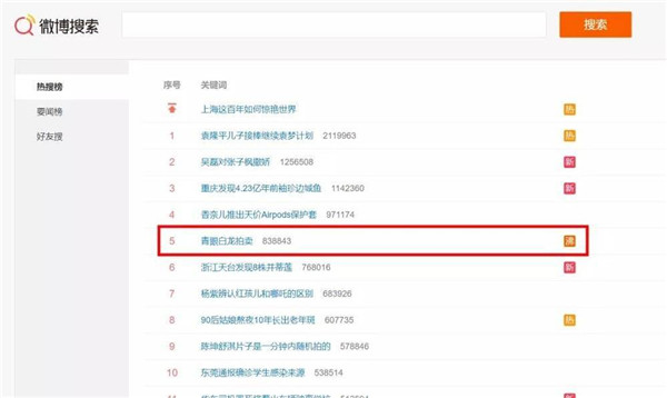 但這場(chǎng)圍獵青眼白龍“競拍”的狂歡并未就此遏制住,反而很快沖進(jìn)熱搜前五,聚攏了更多吃瓜群眾前來(lái)圍觀(guān)。