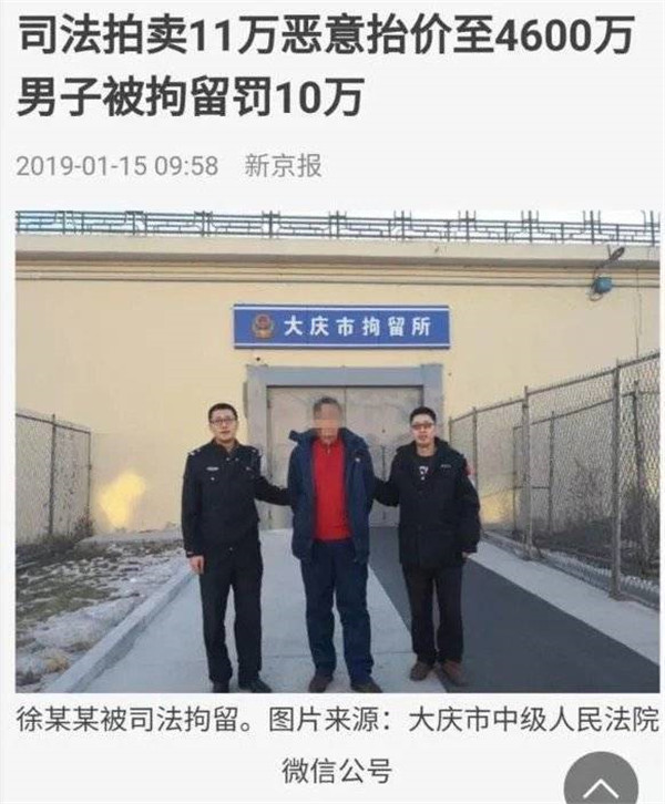 這并非沒(méi)有先例,2019年大慶市中級人民法院就曾對一位惡意競買(mǎi)人徐某某做出處罰: