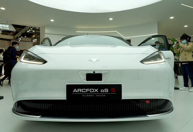 4月19日,華為Huawei ADS高階自動(dòng)駕駛系統展車(chē)在上海國際車(chē)展上亮相。新華社圖