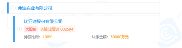企查查股權穿透顯示,該公司由弗迪實(shí)業(yè)有限公司 100% 控股,后者為比亞迪的全資子公司。