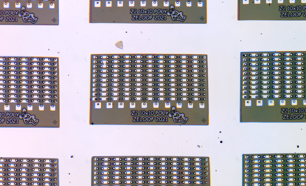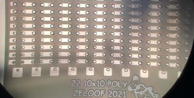 Z2 比 Z1 有了飛躍性的進(jìn)步。改用多晶硅柵極工藝大大降低了功耗,但由于沒(méi)有純凈的化學(xué)品和沒(méi)有潔凈室,產(chǎn)量很低。Zeloof 說(shuō):“我已經(jīng)做了 15 個(gè)芯片(1500 個(gè)晶體管),并知道至少有一個(gè)完全功能的芯片和至少兩個(gè)"大部分功能",這意味著(zhù)良率低于 80%,而不是 100%"。