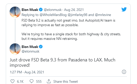 在周二的一條推文中,馬斯克說(shuō)。“FSD 測試版 9.2 實(shí)際上不是很好,但自動(dòng)駕駛/人工智能團隊正在團結起來(lái),盡可能快地改進(jìn)。我們正試圖同時(shí)為高速公路和城市街道提供單棧解決方案,但這需要大量的(神經(jīng)網(wǎng)絡(luò ))再訓練。”