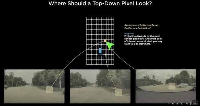 特斯拉汽車(chē)上安裝了 8 個(gè)攝像頭,攝像頭沒(méi)有深度信息,他們的目標之一就是形成矢量空間視圖。那么要怎么知道旁邊一輛車(chē)究竟在哪里又有多長(cháng)呢?