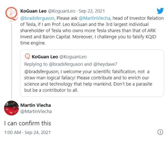 值得一提的是,廖凱原的“特斯拉第三大個(gè)人股東” (僅次于馬斯克和甲骨文CEO拉里·埃利森)說(shuō)法并非自封,去年9月特斯拉投資者關(guān)系主管Martin Viecha曾在社交媒體上確認了這一說(shuō)法。