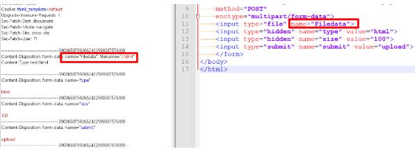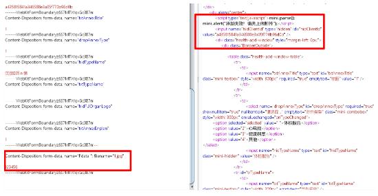 除了 type="file" 需要加一個(gè) filename="XXX", 其他的都一一對應。不過(guò)參數還是太多了,還是先嘗試一下抓包