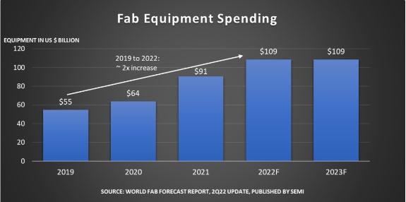 報告稱(chēng)這是繼 2021 年增長(cháng) 42% 后,全球晶圓廠(chǎng)設備支出將連續第三年增長(cháng)。2023 年晶圓廠(chǎng)設備投資預計將依然強勁。