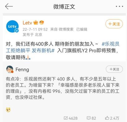 對于這一話(huà)題,在網(wǎng)上引來(lái)很多網(wǎng)友的關(guān)注。有意思的是,作為官方,樂(lè )視也出來(lái)回應稱(chēng),“對,我們還有 400 多人,期待新的朋友加入”。