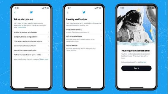 若想獲得認證,用戶(hù)需提交認證申請,填寫(xiě)電話(huà)號碼、電子郵件、申請驗證的理由等信息,由推特審核并判定是否予以批準。這些信息并不會(huì )對外公開(kāi),也就是說(shuō)用戶(hù)仍然是匿名“沖浪”