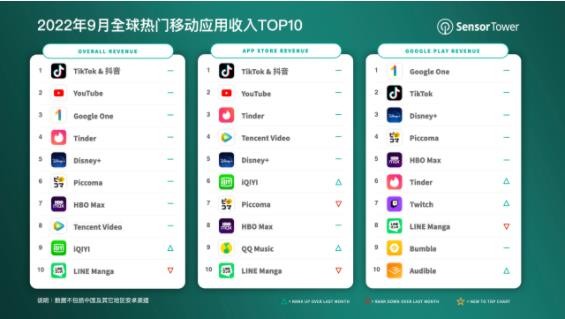 榜單前五名另外三款應用為 Google One、Tinder 和 Disney+。