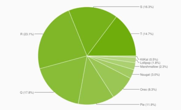 在這個(gè)統計數據中,目前最古老的系統是 2013 年發(fā)布的 Android KitKat,即便已經(jīng)經(jīng)過(guò) 10 年歷史,目前仍然有 0.5% 的用戶(hù)在使用。