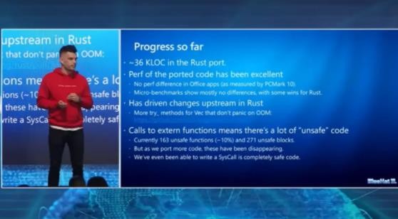 今年 3 月份,Windows 操作系統安全總監 David “dwizzle” Weston 在以色列特拉維夫的 BlueHat IL 2023 上宣布 Rust 進(jìn)入操作系統內核 —— 用 Rust 重寫(xiě)核心 Windows 庫,并表示在接下來(lái)的幾周或幾個(gè)月內,大家將會(huì )在內核中使用 Rust 啟動(dòng) Windows,該項工作的基本目標是將其中一些內部的 C++ 數據類(lèi)型替換成 Rust。