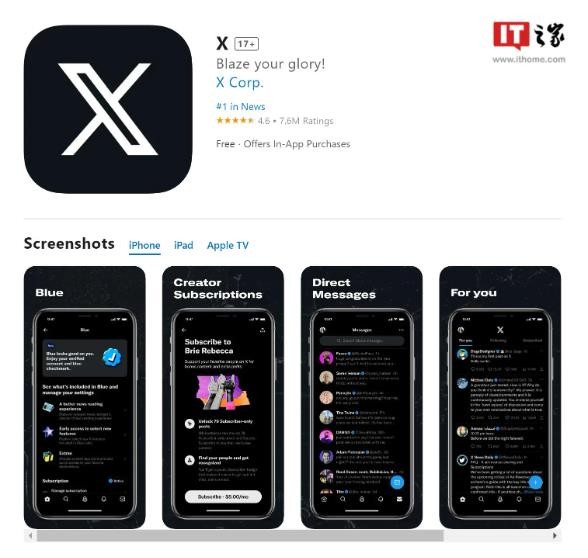 不過(guò),在 iOS 設備的主屏幕上,應用名稱(chēng)是可以為單個(gè)字符的,這也是為何應用在下載 / 更新后目前名稱(chēng)已經(jīng)顯示為“X”,應用的 Logo 也已經(jīng)修改。