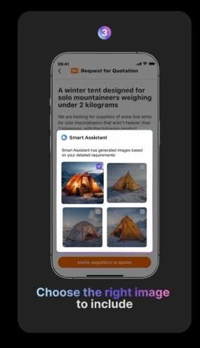 其中,圖搜功能可同時(shí)根據用戶(hù)上傳圖片和文字描述匹配到自己有需求的產(chǎn)品,“智能溝通”可通過(guò) AI 對交流中的重要信息進(jìn)行匯總,而升級的 RFQ 則可以幫助用戶(hù)為目標產(chǎn)品一次性補充信息,或者匹配產(chǎn)品圖片。