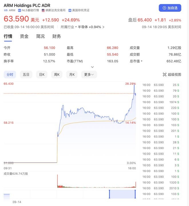 年內最大IPO來(lái)了!Arm上市首日大漲近25%,市值超650億美元 09:23:36