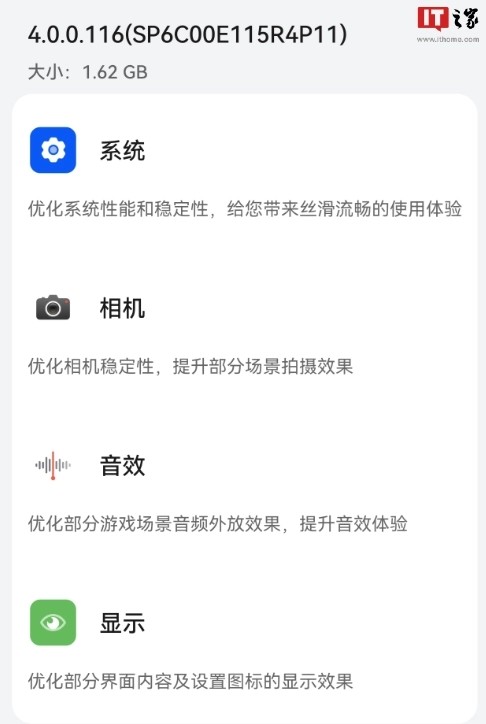 據網(wǎng)友反饋,華為 Mate 60 Pro 手機現已推送 HarmonyOS 4.0.0.116 版本更新,版本為SP6CO0E115R4P11,安裝包大小為 1.62GB。