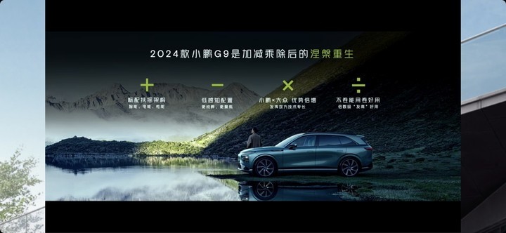 發(fā)布會(huì )上,何小鵬談起了更多小鵬內部為 G9 改款付出的努力,「加減乘除」是小鵬內部團隊對 2024 款 G9 的高度概括。