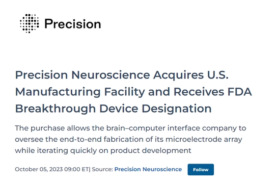 “大腦第7層”獲FDA突破性設備認證 公司同日宣布收購制造工廠(chǎng)